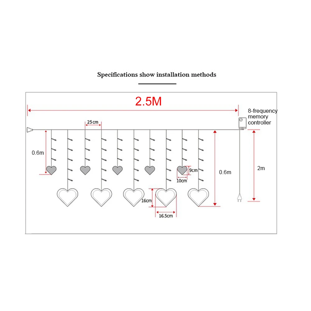 Heart Shape Fairy String Light 2.5M Super Bright Lamp String 8 Modes Home Romantic Curtain Lamp Gar